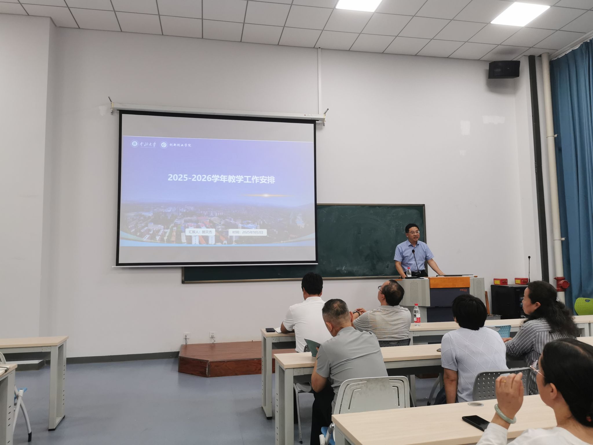 会议伊始,郎文杰副主任首先回顾了过去一年教学工作的亮眼成果,从课程建设、教学改革、质量监控等维度系统梳理工作亮点;随后围绕2025-2026学年教学工作重点,从教学计划优化、师资能力提升、实践教学强化等方面作出详细安排。紧接着,挂职副院长姬文芳以“从‘项目制’教学改革到国创赛项目的思考”为题作专题报告。报告紧扣创新创业教育核心,深入剖析“项目制”教学与国创赛项目的内在关联,提出以有组织的教学活动为抓手、以赛事成果为导向的育人思路,为全面提升创新创业工作提供了有力指引。