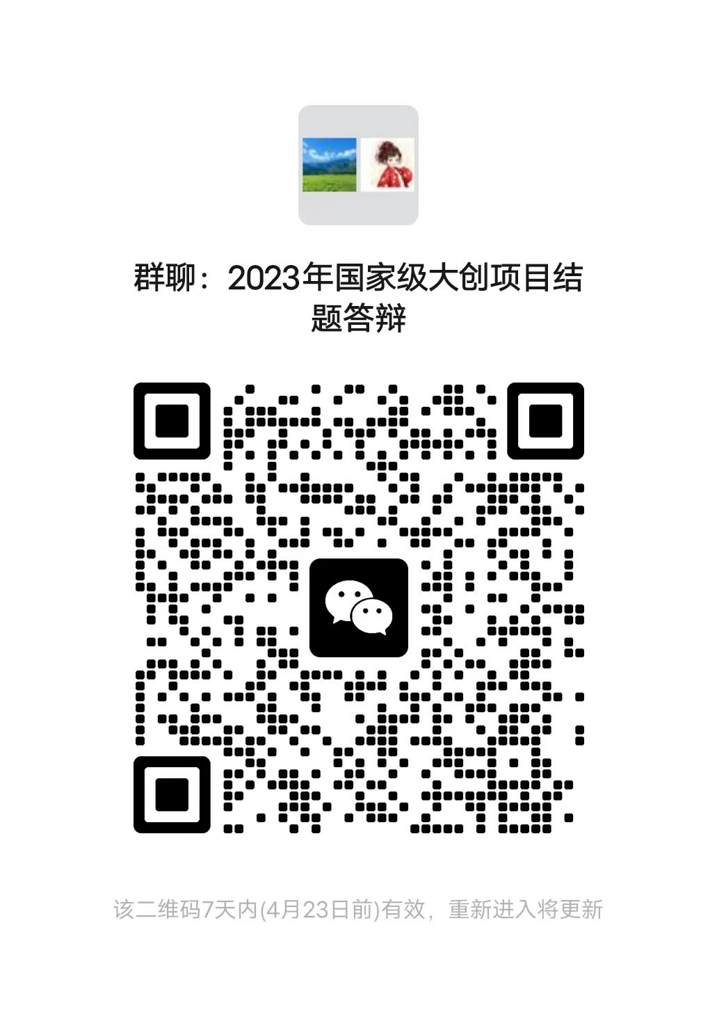 国家级项目团队须加入微信群“2023年国家级大创项目结题答辩”微信群,便于接收通知。